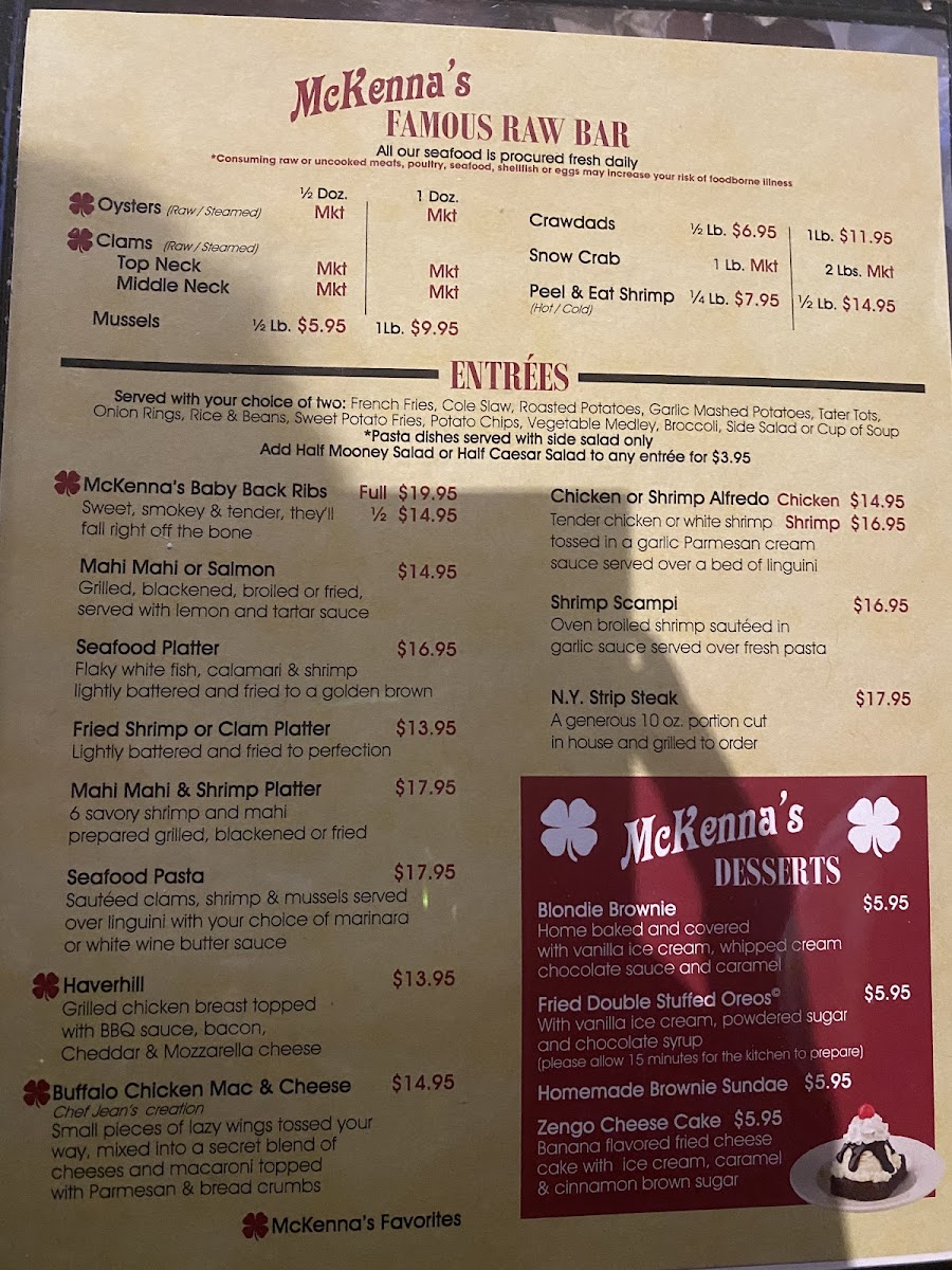 grilled, blackened, fried, or lemon pepper with any 2 sides, lemon & homemade tartar sauce
